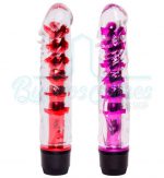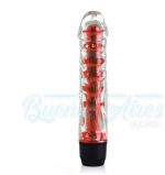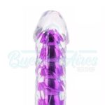 Cuerpo central rígido cubierto por una suave funda de gelatina con protuberancias estimulantes.