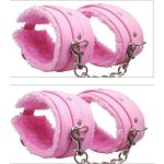 El set incluye: dos juegos de esposas para manos y tobillos forradas en peluche, antifaz ciego forrado en peluche, mordaza, collar forrado en peluche con correa, látigo y cuerdas para amarres, color rosa.