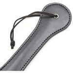 Sensual palmeta confeccionada en cuero sintético negro con 3 corazones de color rojo.